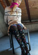 "Sometimes it seems like I am two people. The public one, the one everyone sees. The one with a smile for everyone. But the other girl wants to come out. The naughty girl. The bad girl. The one that deserves to be tied down and punished. Thanks to my friend Sandra who is a professional dominatrix, it was time for me getting chairtied and gagged for a while...The attic was musty, and dusty, and would be my prison for at least an hour." |