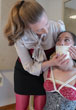 Helena is tied up tight with a lot of rope and gagged with a ball ga. It was hard to get these big thing in her little mouth but it gets jammed in there good. This is a very strict chair tie and her leatherboots make those nice screetching noises as she struggles againts her bonds. Eventually she resigns her fact to the fact that she will be gagged like this for some time and her shy smiles will surely tease you good! Just can not help it, but we liked seeing her tied up and gagged super tight like this. |